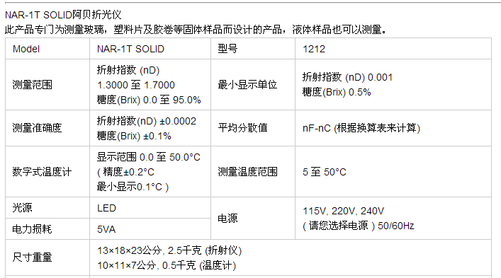 • ATAGO(愛拓) 阿貝折射儀NAR-1T SOLID