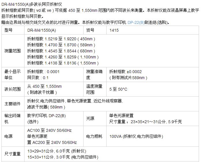 ATAGO (愛拓) DR-M4/1550(A) 臺(tái)式數(shù)字式多波長(zhǎng)近紅外線阿貝折射儀